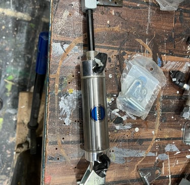 Our first piston attempt with ones we had instock. we learned it needed a wider cylinder to take the rating required and its mounting to the wood allowed for to much deflection.