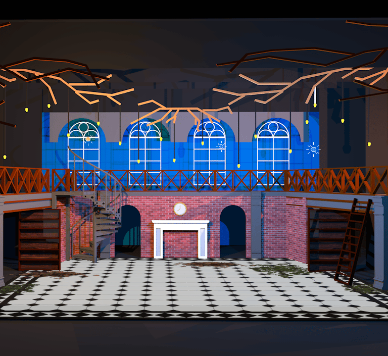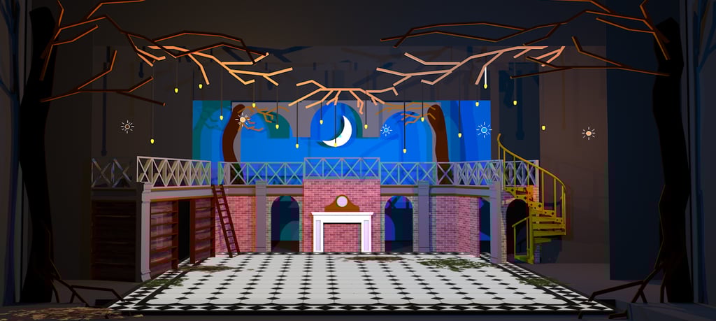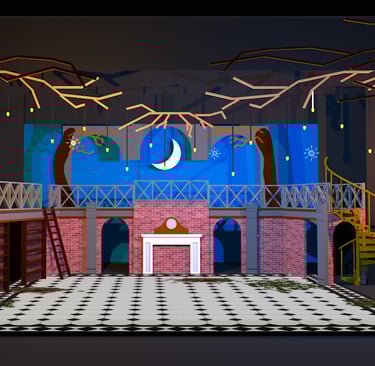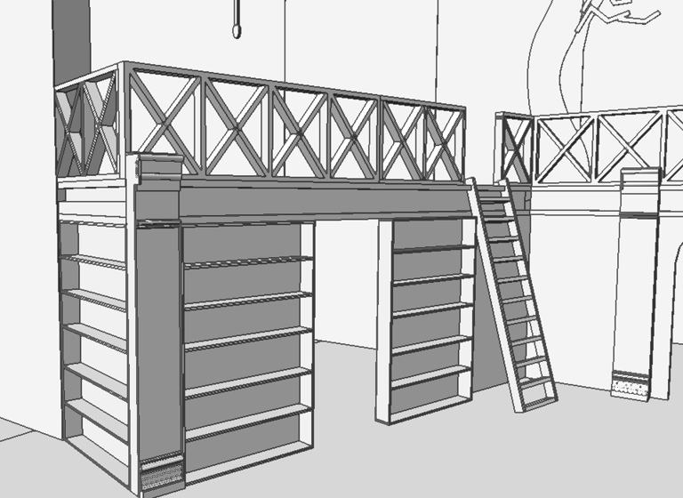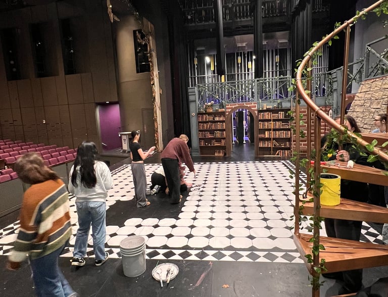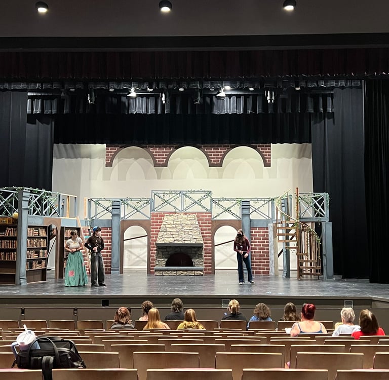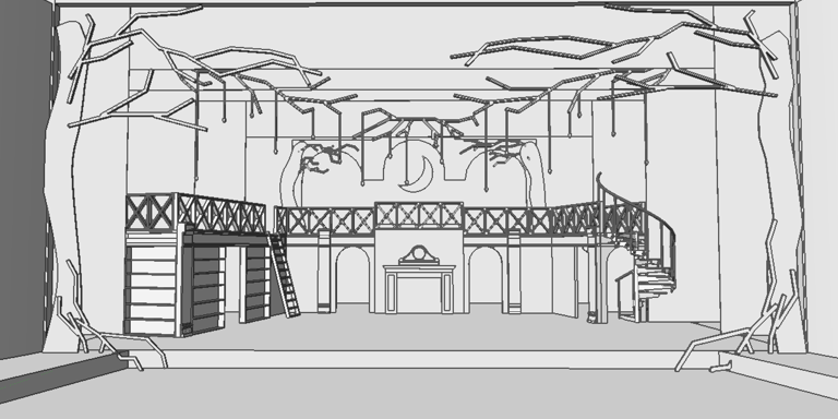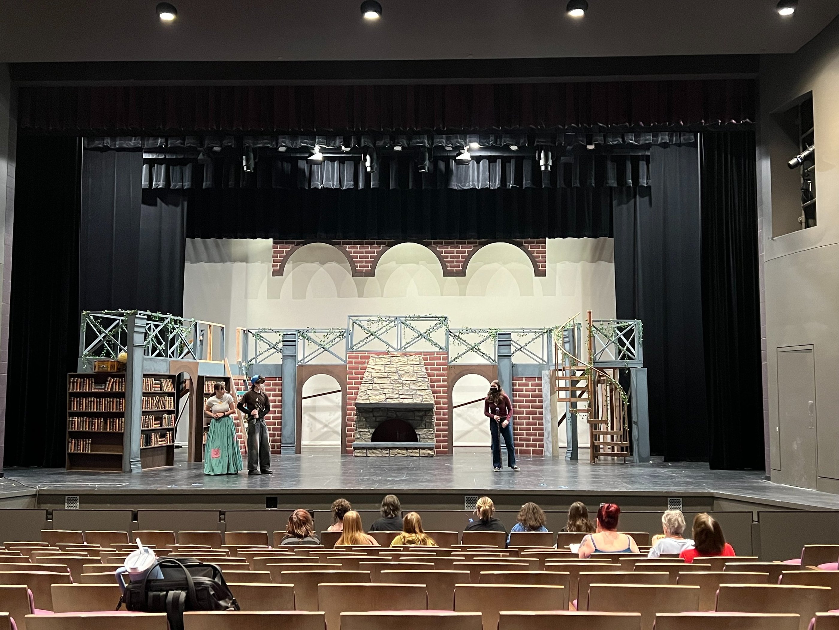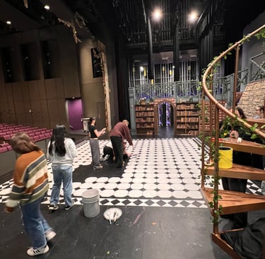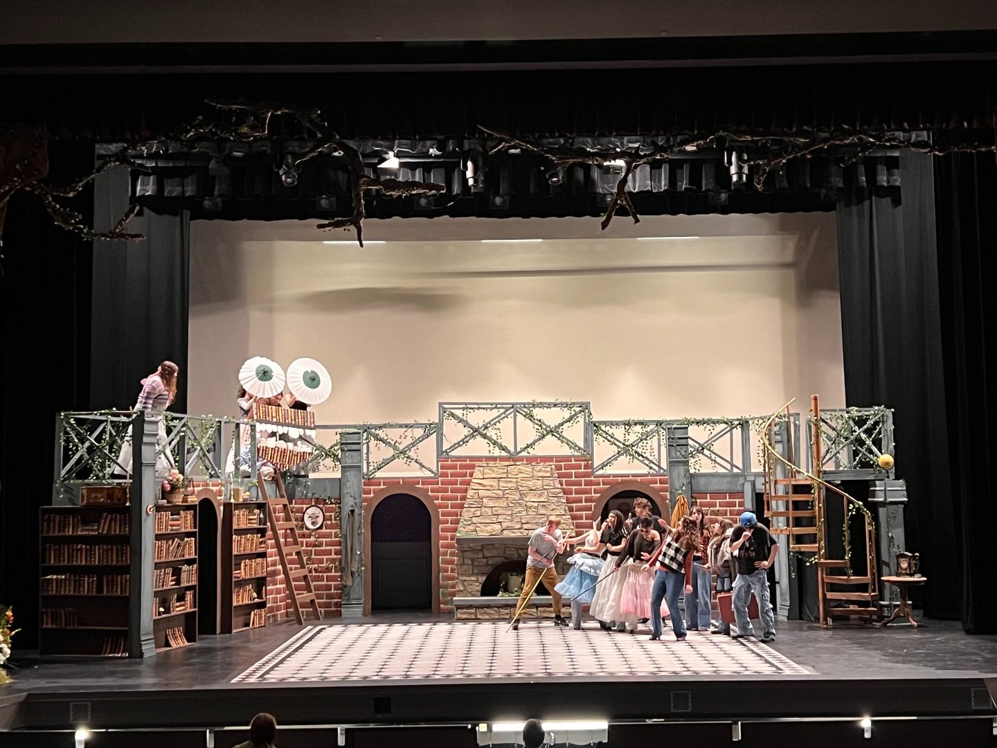 Definitely the largest, most ambitious show done at Mountain Side HS. The artistic direction we went with was fairy tail library, with the added whimsy of the spiral stair case.