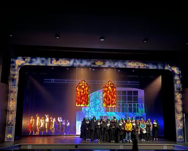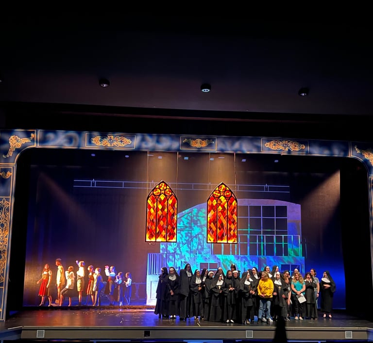 At the time of production for "Sound Of Music" Mountain Side Highschool had only an after school program as their entire theatre department. with no permanent drama teacher on staff and no theatre classes to take we relied on students of all grades who have never wielded a paint brush, much less a screw gun.